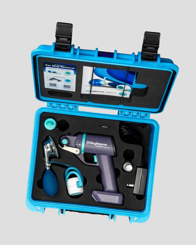 Ring Rescue is a medical device company that designs specialized tools for removing stuck rings safely and efficiently in medical and emergency settings. Their flagship product, the Ring Rescue Kit, includes a Compression Device and Dolphin Ring Cutter that allow healthcare providers and first responders to remove rings without causing patient injury.